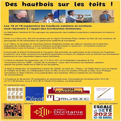 DES HAUTBOIS SUR LES TOITS ! (Les 18 et 19 septembre 2021, les hautbois catalans et occitans vont répondre à l’appel des bombardes bretonnes)