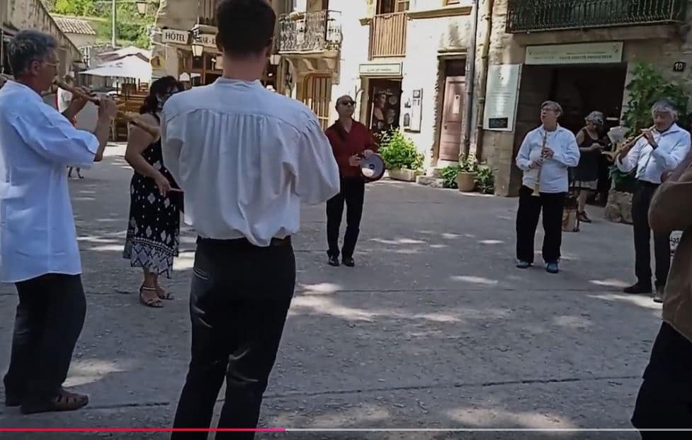 Restitution publique en bande de hautbois et percussions (en extérieur à Saint-Guilhem-le-Désert le 1er juin).